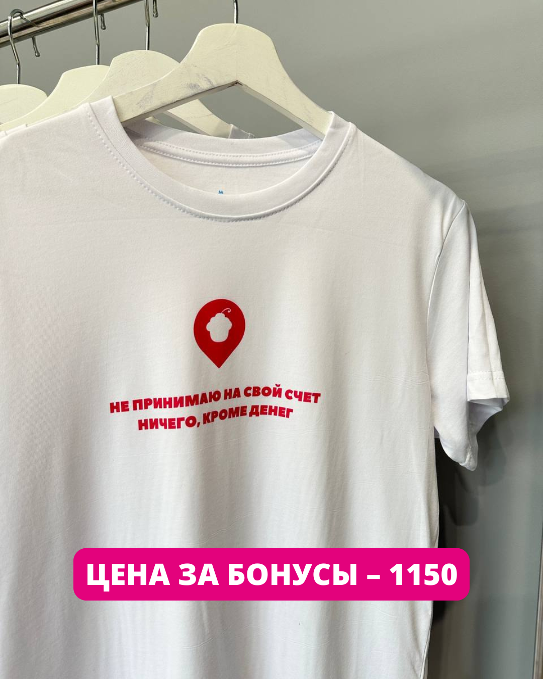 Этот мерч мы запустили специально для тех, кто любит стиль и торты! Теперь у вас есть уникальная возможность приобрести тематическую футболку с яркими надписями не только обычным способом, но также за бонусы, получая еще больше выгоды! Чтобы приобрести товар за бонус напишите нашему менеджеру!